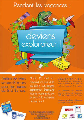 Pendant les vacances d'avril 2016, l'association Carrefour des Sciences et des Arts propose aux jeunes de 8 à 12 ans un stage science "Deviens explorateur" !
